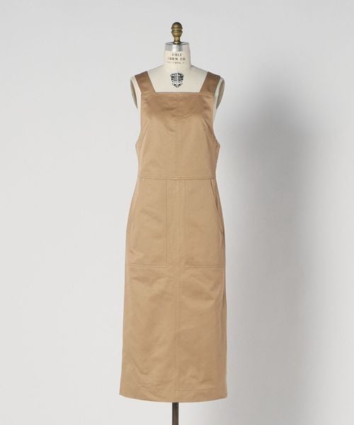 艶感のある毛羽の少ないコットン素材で仕立てたサロペットワンピース。