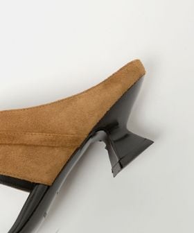 アイコニックなヒールデザインが足元にさりげないエレガンスを添え、軽やかで上品な印象を演出します。