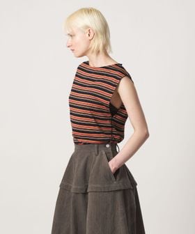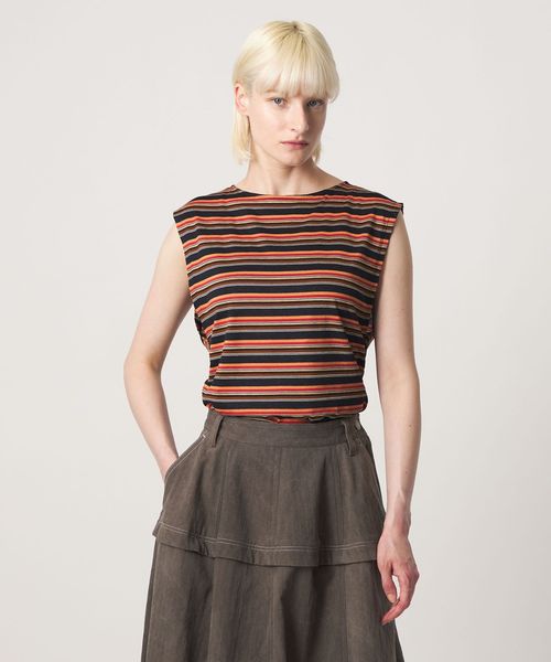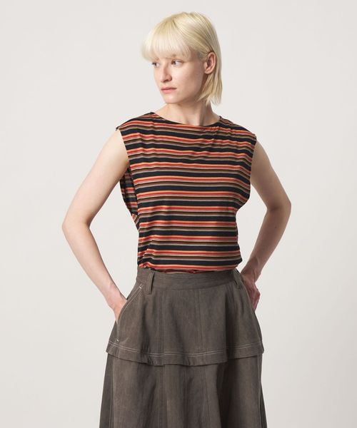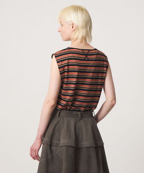 彩り豊かなマルチボーダー柄が印象的なノースリーブトップス