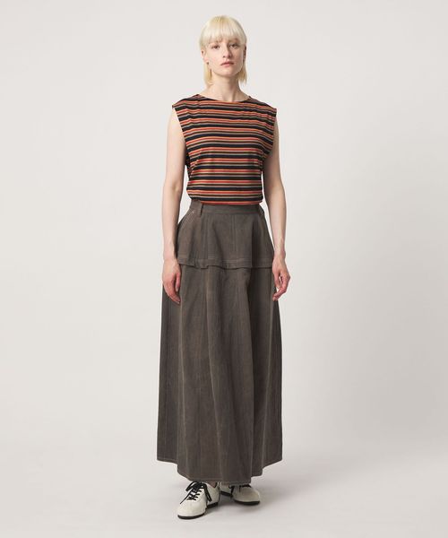 少しオーバーショルダーのデザインで、1枚でもバランスよく着こなせるシルエットに仕上げたノースリーブカットソー。