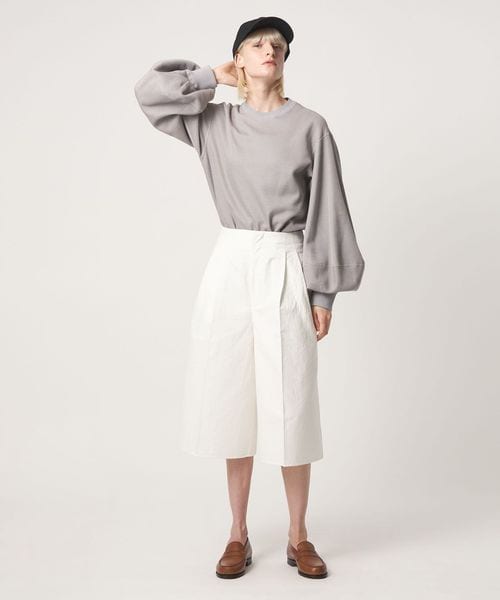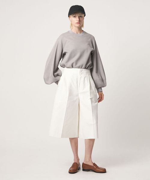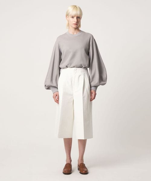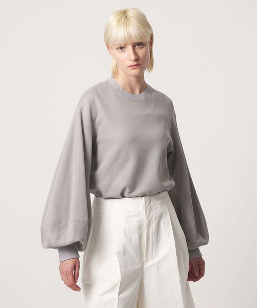 たっぷりとボリュームを持たせた立体的なスリーブデザインが、シンプルな中にモードなニュアンスを添えます。