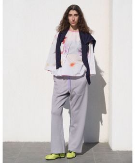 ウエストまわりにはランダムにタックを施し、動きに合わせてニュアンスが生まれるアシンメトリーなシルエットに仕上げました。存在感がありながらも着こなしやすく、Tシャツ感覚でカジュアルに落とし込むスタイリングもおすすめです。