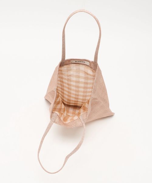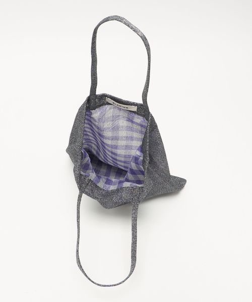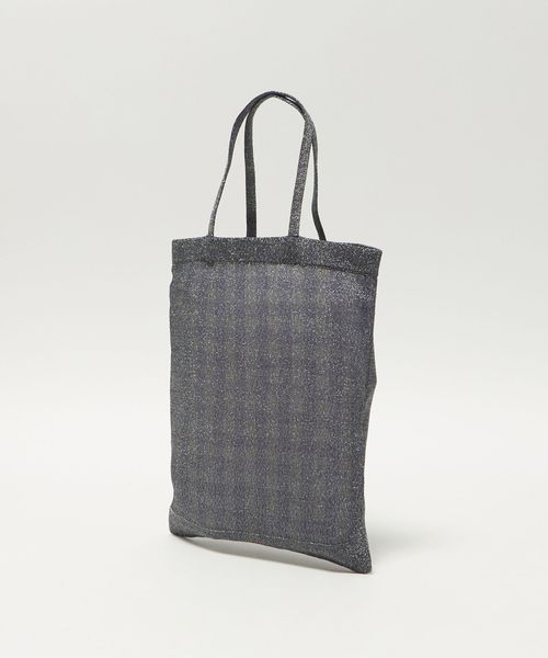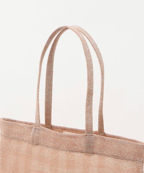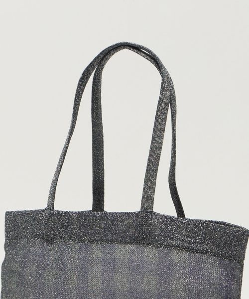 繊細なラメ糸で編み立てた繊細なニット編みトートバッグ。