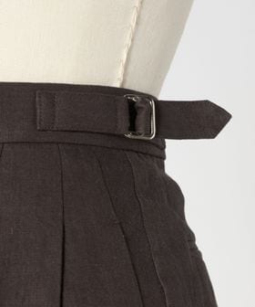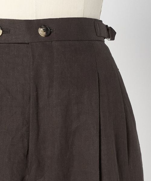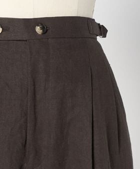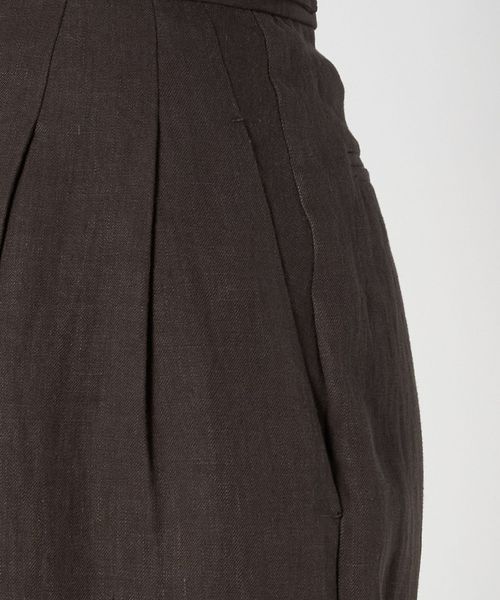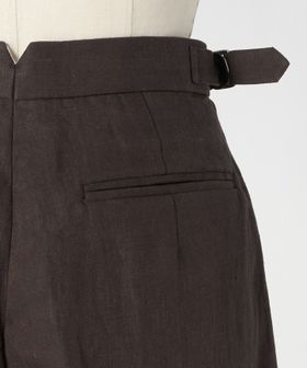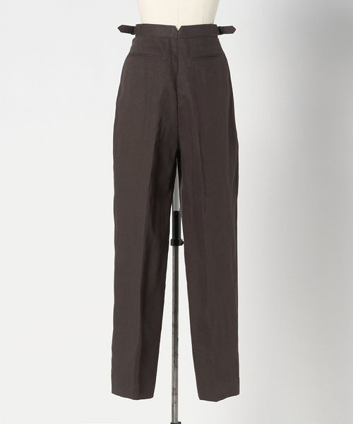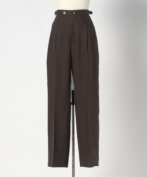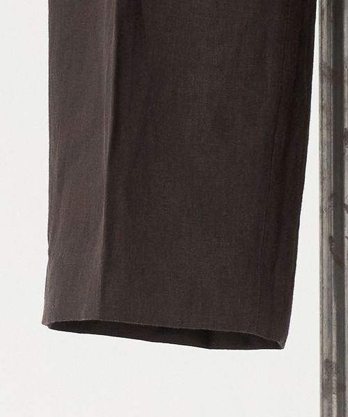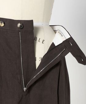 深みのあるブラウンカラーの麻素材で仕上げた、2タックのテーパードパンツ。