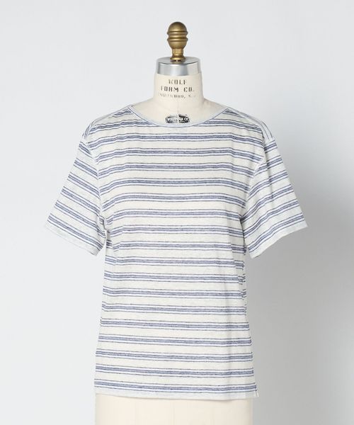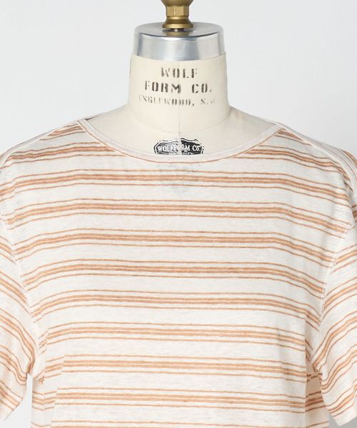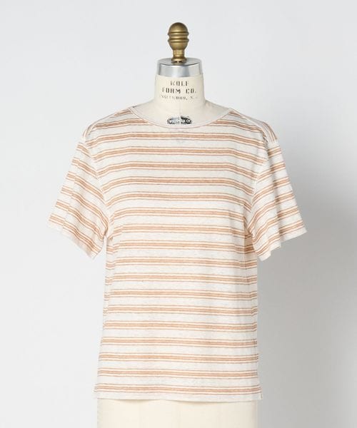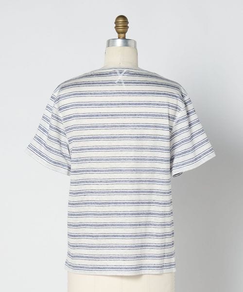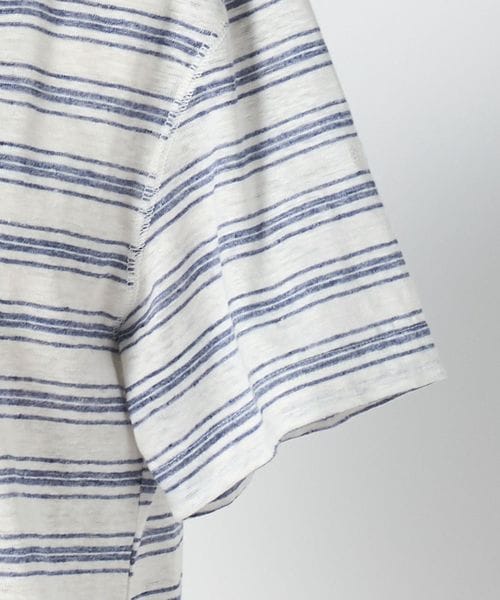 ふしのある麻糸の風合いをいかして仕上げた、ボーダーTシャツ。