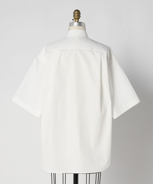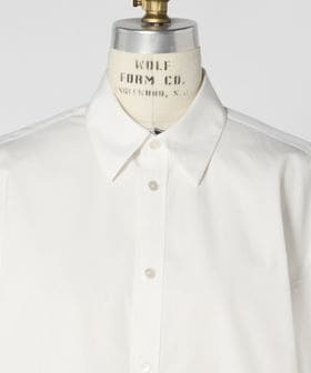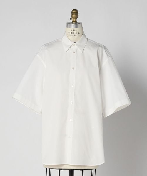 高密度なコットンシャツ生地を使用した、ホワイトカラーのショートスリーブシャツ。