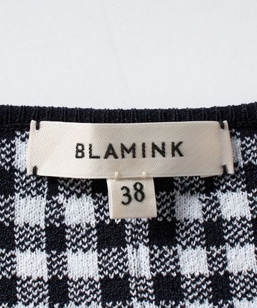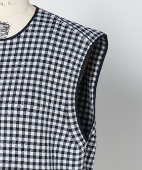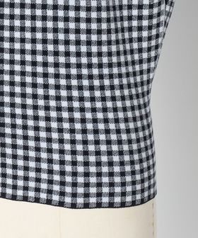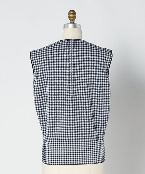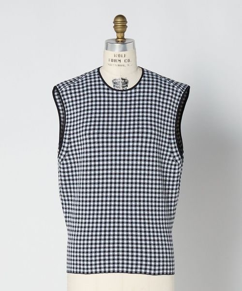 ネイビー×ホワイトのギンガムチェックで成形編みした、ノースリーブニット。