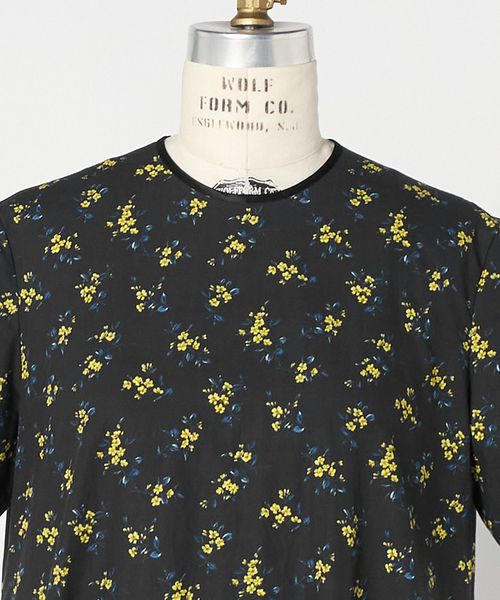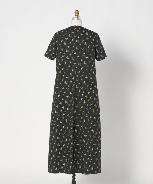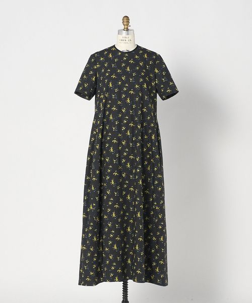 ミニマルなフォルムにプリントのやさしい華やかさが映え、さらりと一枚で装いが完成する存在感ある一着です。