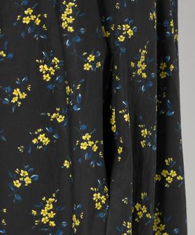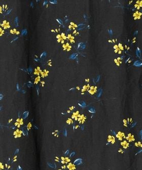 高密度に織り上げたコットンタイプライター素材に、黄色い小花を散りばめた特別感のあるプリント生地を使用しています。