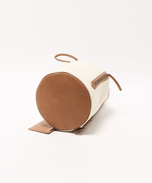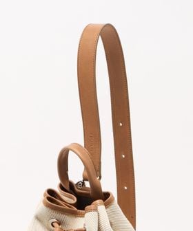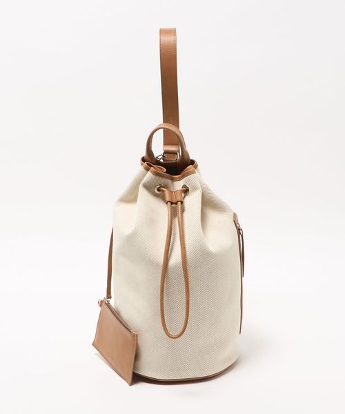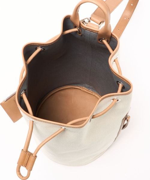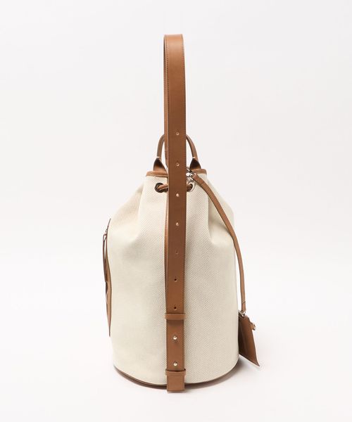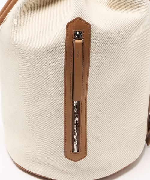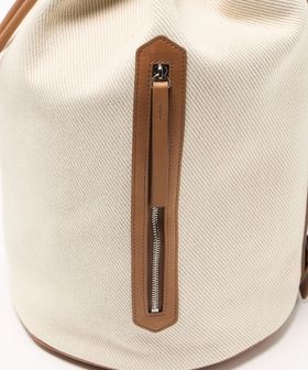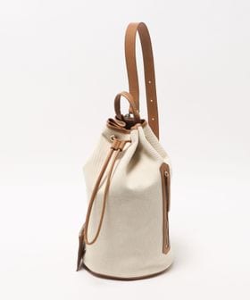 キャンバスをベースに、キャメルブラウンのレザートリミングを効かせた、BLAMINKオリジナルのワンショルダーバケットバッグ。