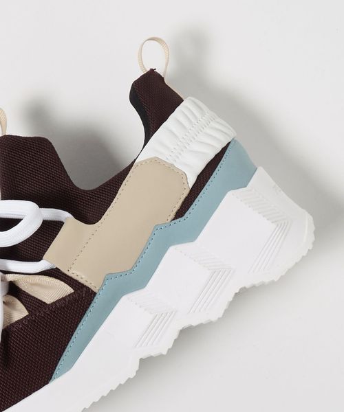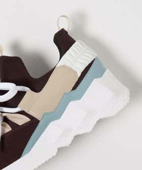 特徴的なキューブ柄をプレスしたソールが目を惹く、ボリューム感あるスニーカー。