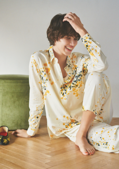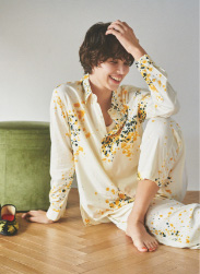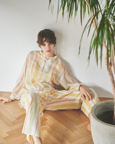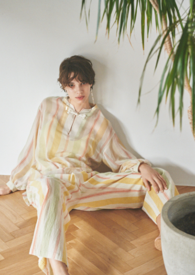 手染め、ハンドペイントで仕立てたパジャマは、見た瞬間に笑顔になれるような、お家時間を有意義に過ごせるようなアイテムに。単品使いで普段着としても◎