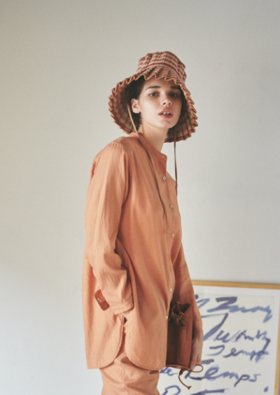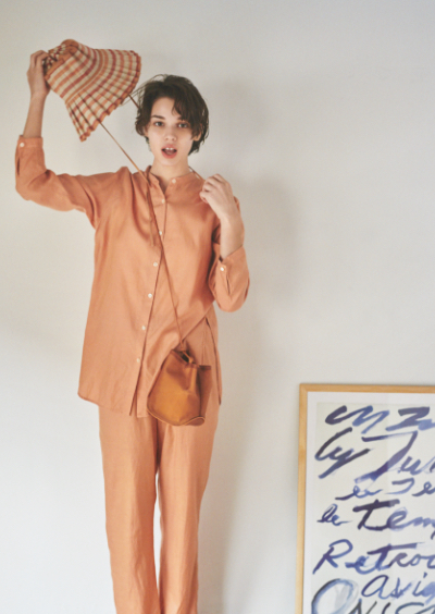 上品な光沢感と、トロミのある柔らかな風合いのバンドカラーシャツとイージーパンツ。ゆったりとした着心地とともに、春らしいカラーリングを堪能ください。