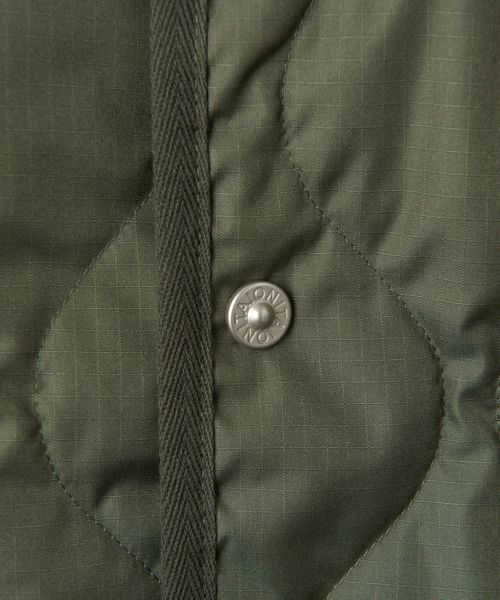 "金属ボタンがポイントのミリタリークルーネックダウンジャケット”