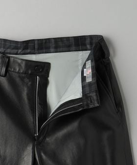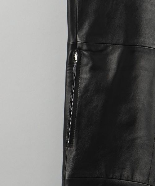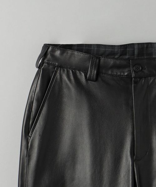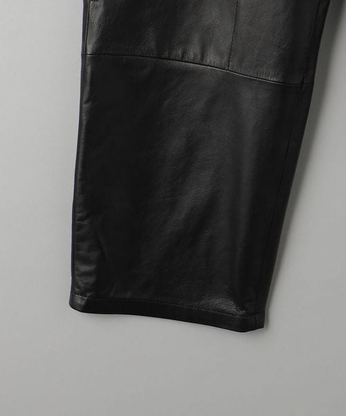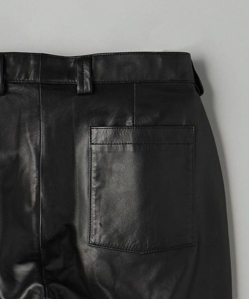 無駄を省いたミニマルデザインで、柔らかな羊革を使用したレザーパンツ。