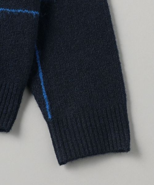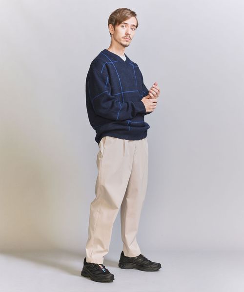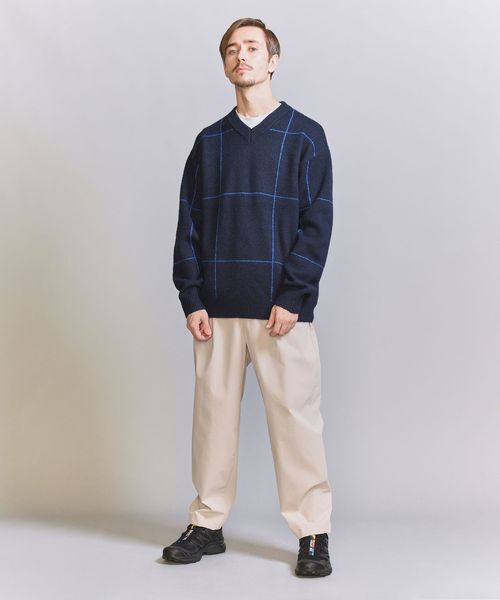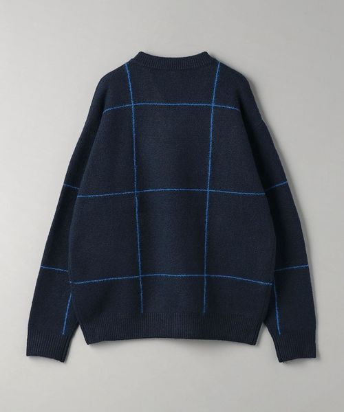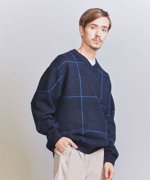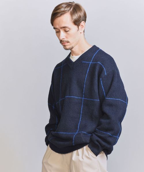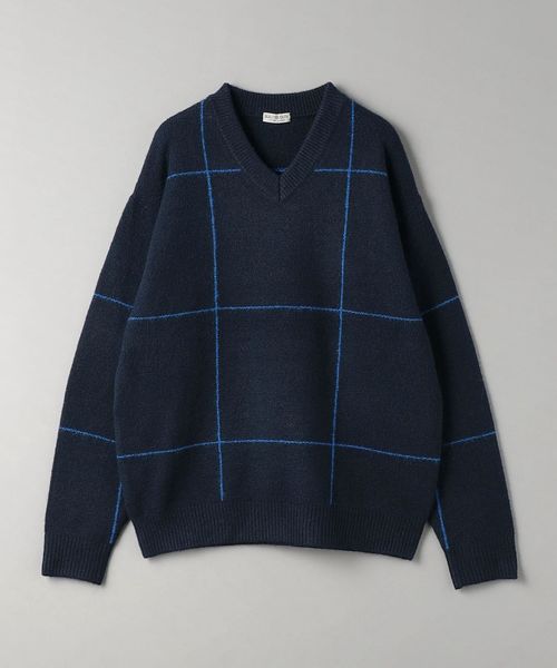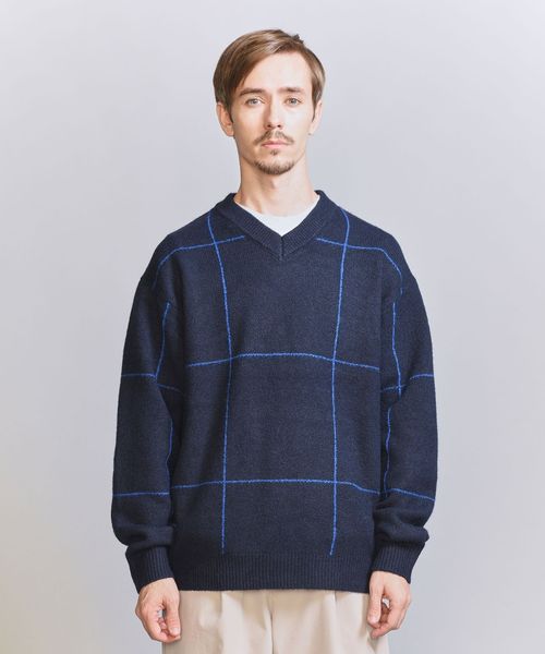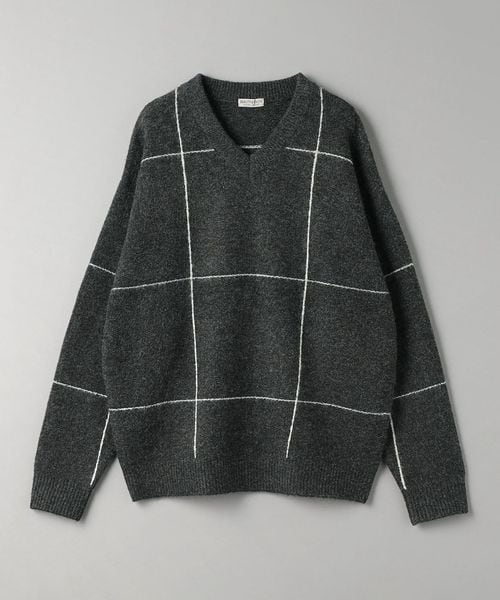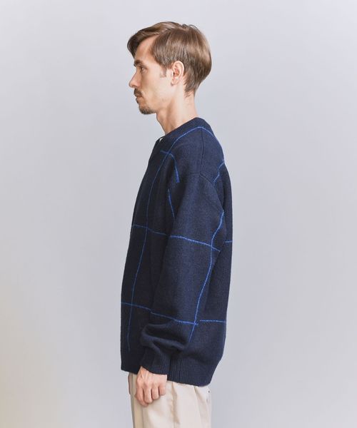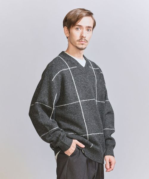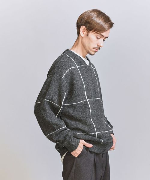 ウィンドウペン柄がアクセントとなるため、シンプルなスタイリングでも着映えする主役級ニットです。