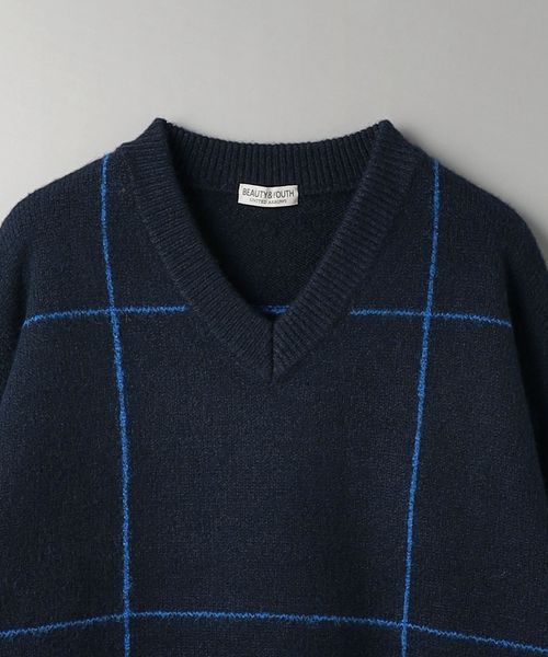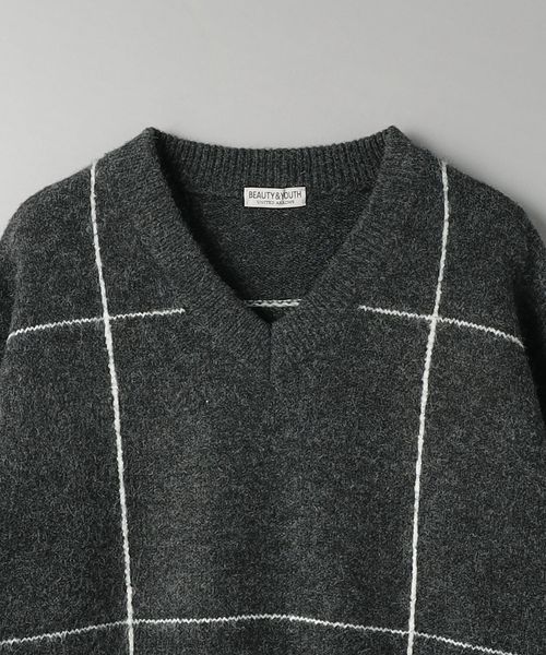 ヘアリー ウィンドウペン Vネック ニット