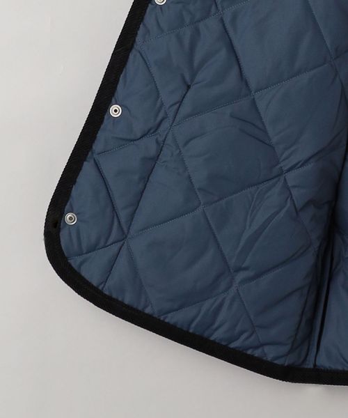 心地よい張り感の生地に斜めキルトを入れ、コーデュロイ生地でパイピング処理をすることでシックでクラシカルなイメージに仕上がっています。