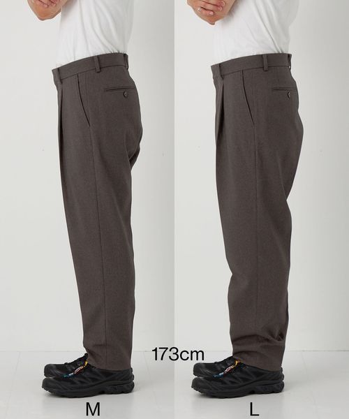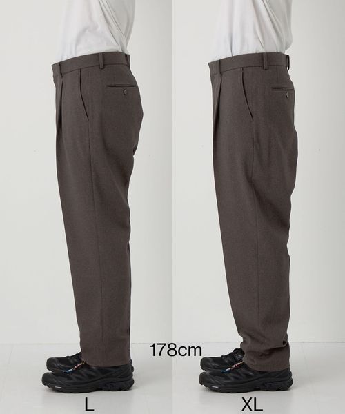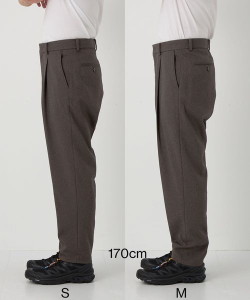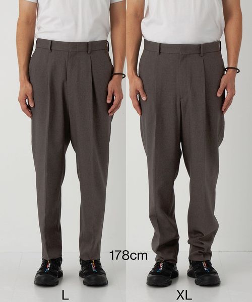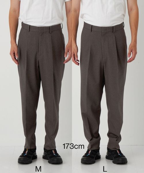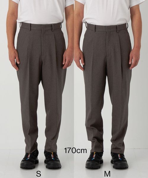ウエスト周りにタックを入れヒップからわたりにゆとりを持たせて、裾に向かって緩やかに細くなるシルエット。