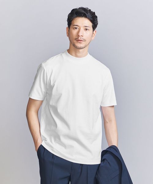 スマートにインナーや一枚着として着こなせるモックネックTシャツです。