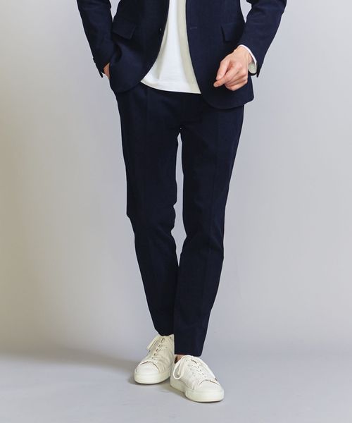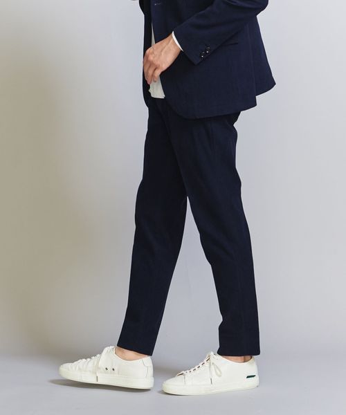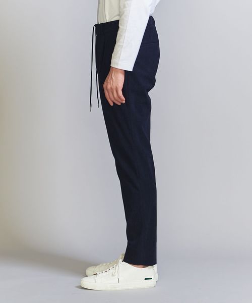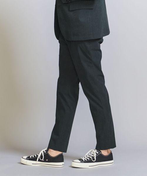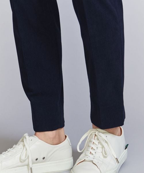 1プリーツを入れヒップ周りに適度なゆとりを持たせつつ、裾に向かって細くなるスリムテーパードシルエット。