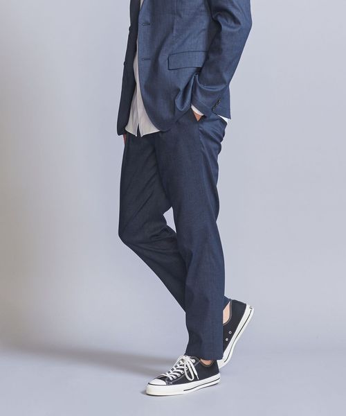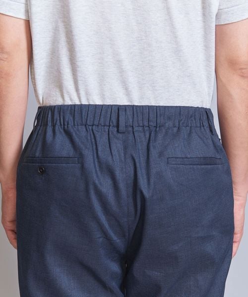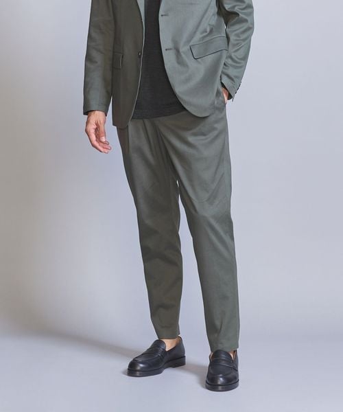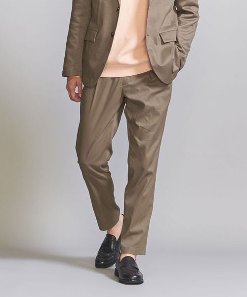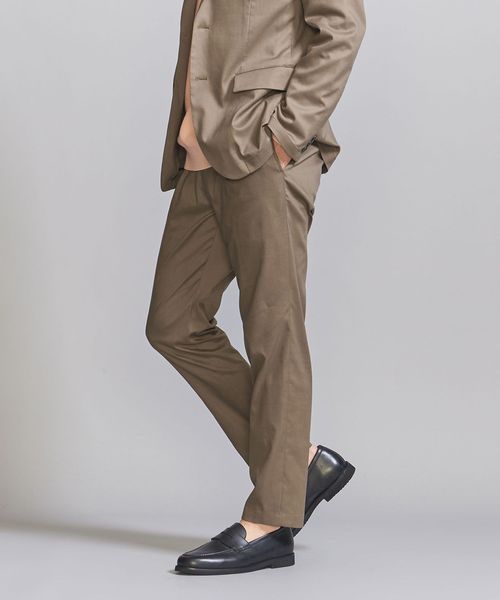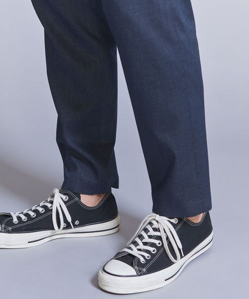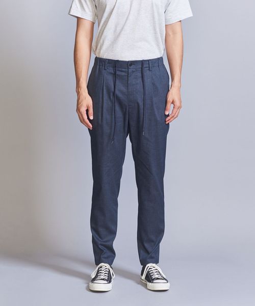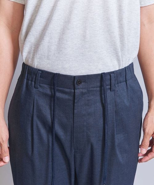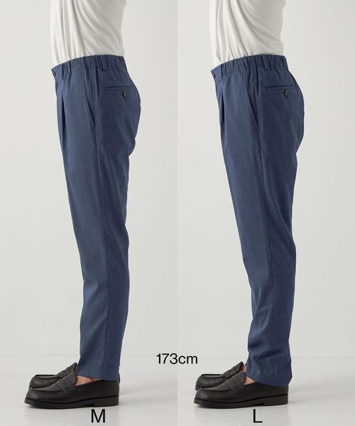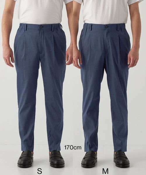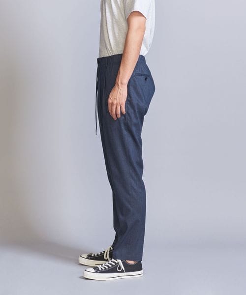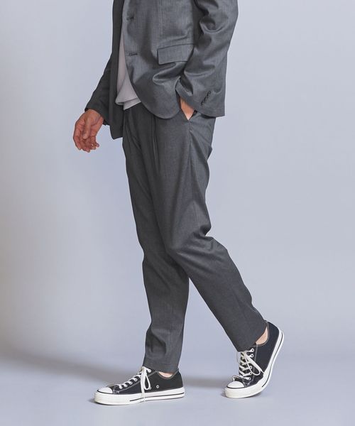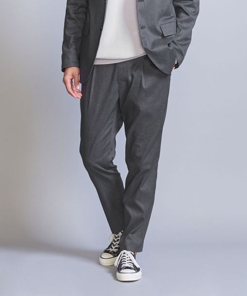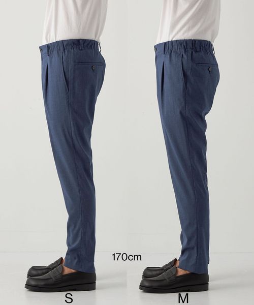 ウエスト周りにタックを入れヒップからわたりにゆとりを持たせて、裾に向かって緩やかに細くなるテーパードシルエット。