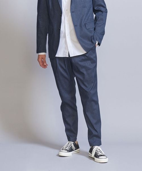 パンツ単品使いはもちろんですが、同生地でジャケットもお作りしている為、セットアップでのコーディネートもおすすめです。