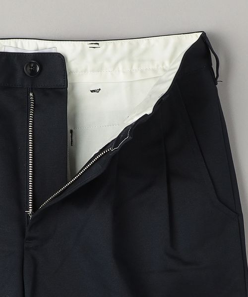 密度の高いややハリのある生地を使用した2タックのトラウザー。