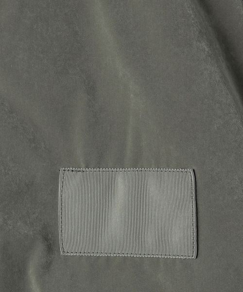 所謂なものに比べ全体的にゆとりを持たせたリラックスしたシルエットで、胸に配したグログランテープ、スタンドカラーにチンストラップを取り付けた襟元も特徴です。