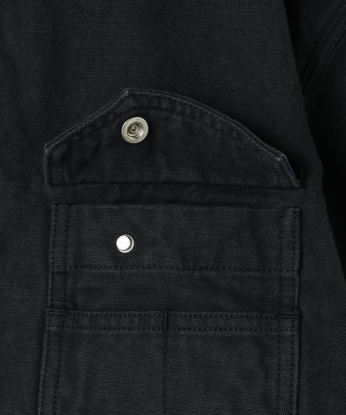 衿をコーデュロイで切替えたコットンオックスフォード生地のカバーオールジャケットです。