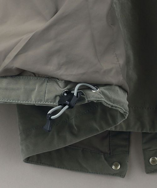 ポリエステルナイロンタフタ素材を使用したミリタリーコートです。