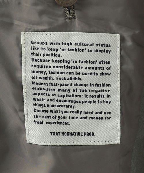 洋服とは、人生を投影するための道具である。<nonnative>は、そんな普遍的なアーカイヴ(道具)の中から、用途に合った生地・丈夫な縫製・実用的なディテールといった「機能」を抽出。時流にあったシルエットに再編集する。