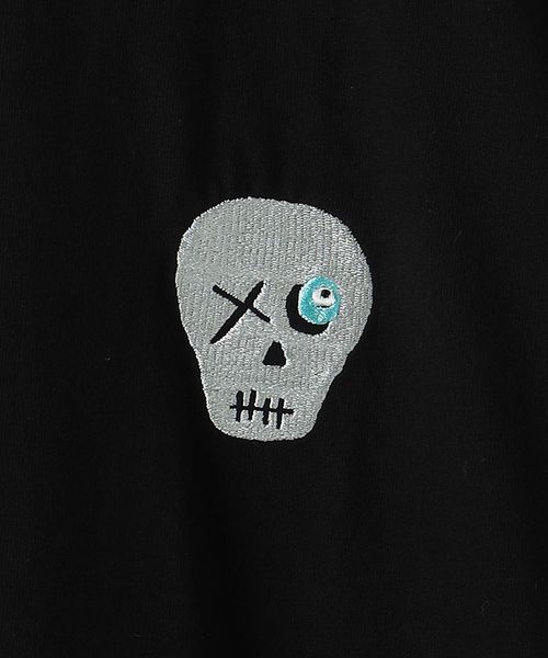 かわいらしいスカルモチーフの刺繍がユニークな一枚。