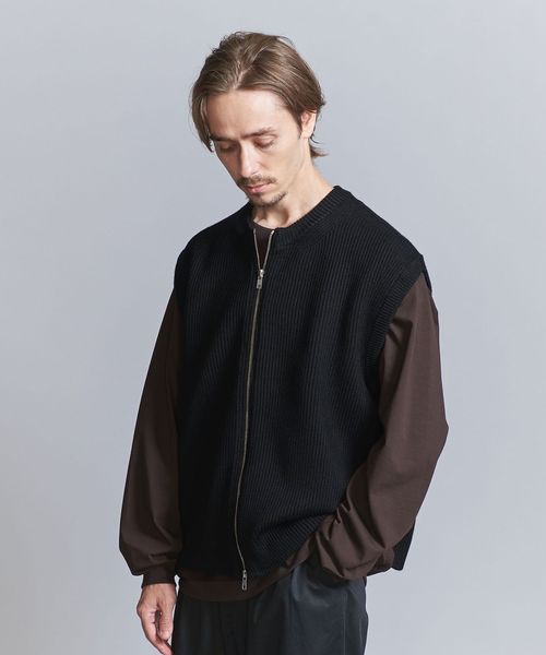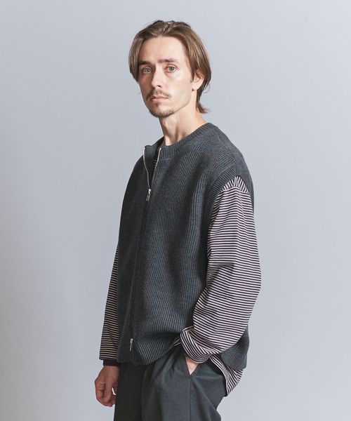 レイヤードコーデに活躍すること間違いなし、洗練されたカジュアルスタイルが叶うニットジップベスト。