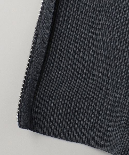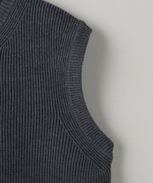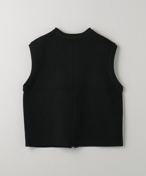 シルバーカラーのジップ使いが品よくクリーンなムード漂う、ミニマルデザインのニットジップベスト。