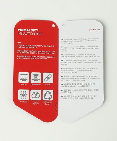 高機能なポリエステル素材を使用したPrimaLoft Black Insulation RISEを採用しています。