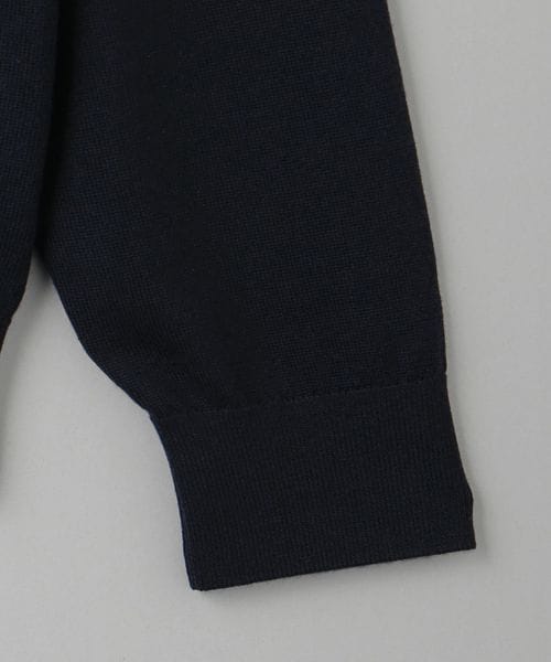サドルスリーブによるタイムレスなデザインで編み上げたVネックカーディガンは、特にVゾーンのバランスにこだわった1枚。