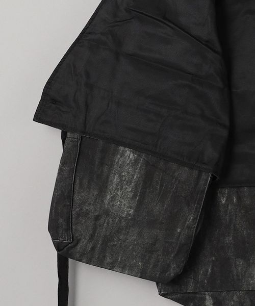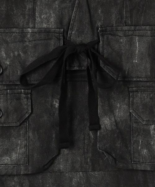 フロントはボタンのほか、ポケットに縫い付けられたストリングでも留めることができ、インナーだけでなくジャケットの上からでもスタイリングが可能です。