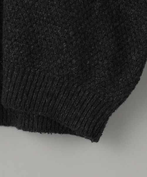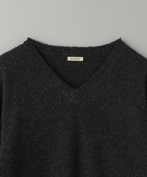 軽く柔らかい肌触りの良いブークレニット生地にて制作されたVネックニット。