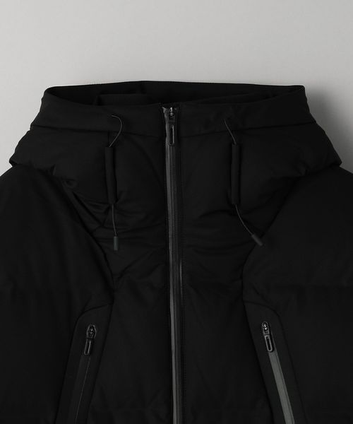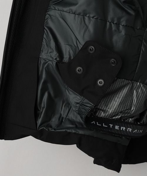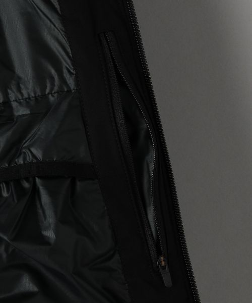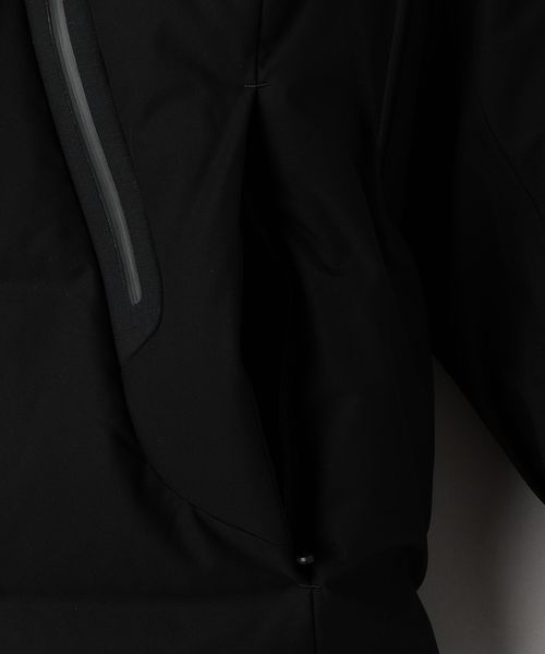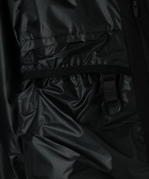 またフードをコンパクトに収納するだけでなく、雨などの悪天候下での着用も考慮しフードへの水たまりを防ぐパラフードシステムを採用。