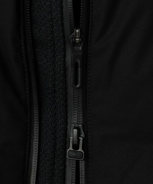 フロントジッパー部分に採用されたデュアルジップベンチレーションは、2列のジッパーとその間に配置されたメッシュ生地により衣服内に外気を取り込み、ジャケット内にこもりやすい不快な熱や湿気を逃がすことが可能。