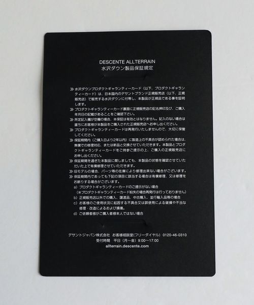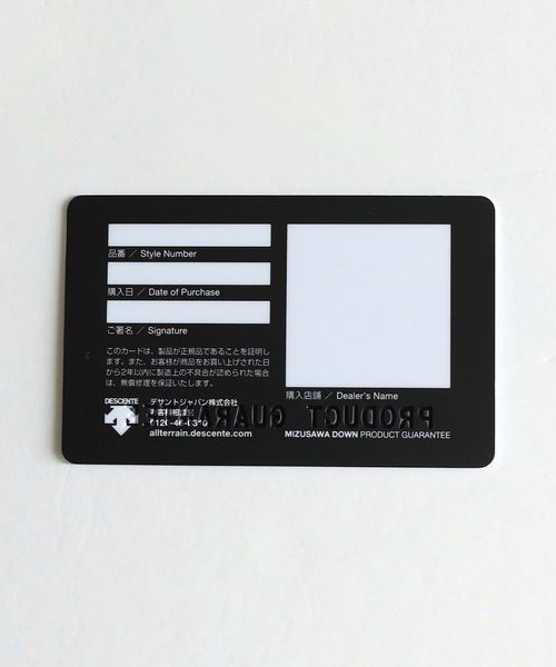 ※ギャランティカードは本製品の胸内ポケットに入っています。