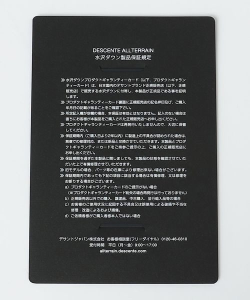 ※ギャランティカードは本製品の胸内ポケットに入っています。