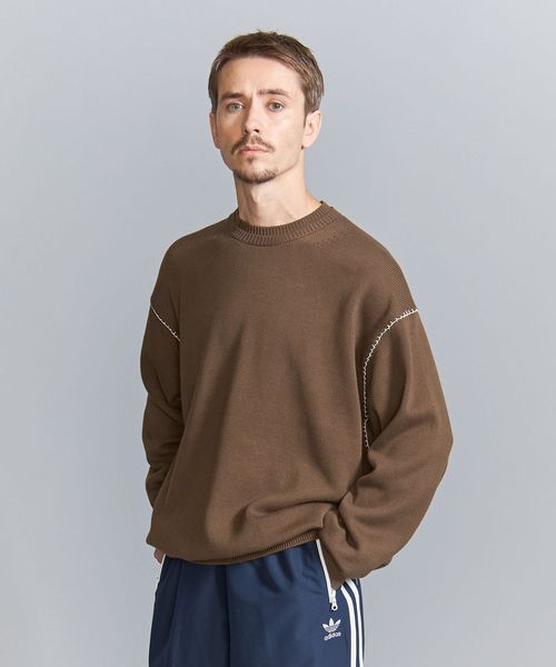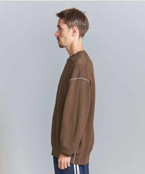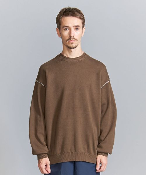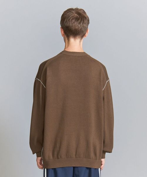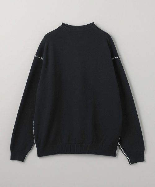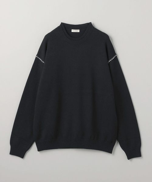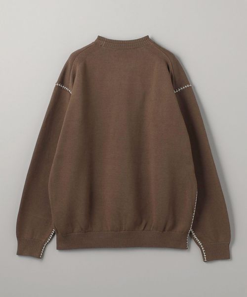 クラフト感のある配色ハンドステッチデザインがユニークなクルーネックニット。