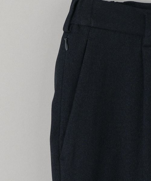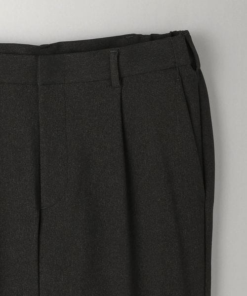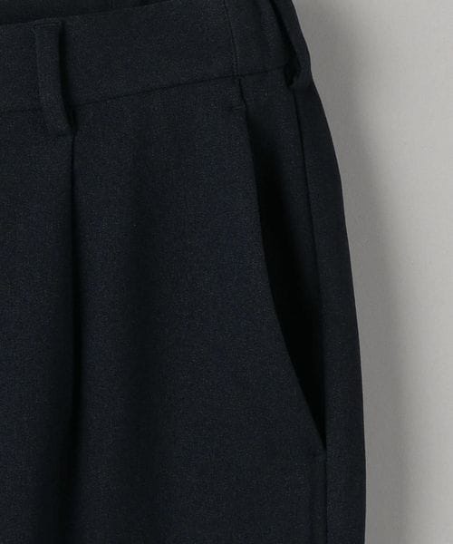 ウエスト周りにタックを入れヒップからわたりにゆとりを持たせて、裾に向かって緩やかに細くなるテーパードシルエット。