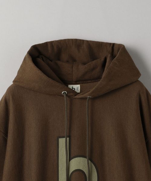 前回は正面に“B”、背面に“Y”を配した遊び心あふれるプリントを施しましたが、今回はフロントにのみ“b”を落とし込んだシンプルなフーディで。