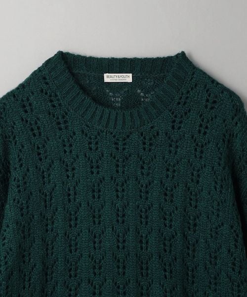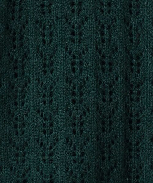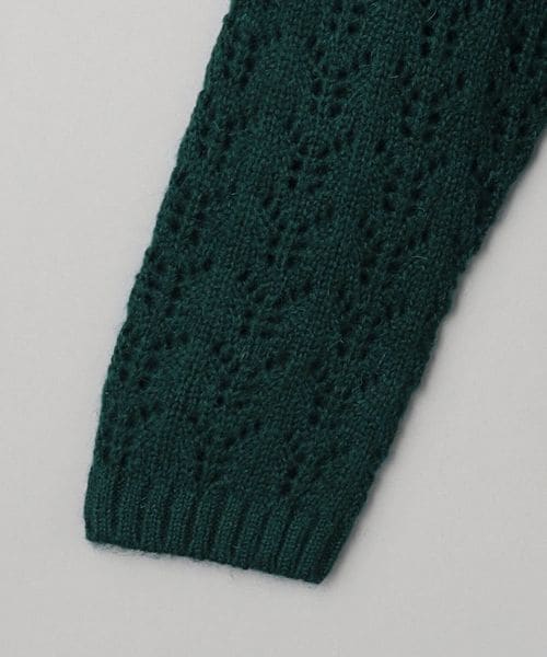 秋冬シーズンムード漂う、リーフパターンの透かし編みが目を惹くニット。