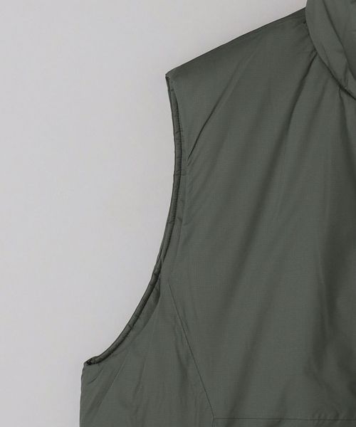 テクニカルなカッティングやディテールが特徴の中わた入りベスト。