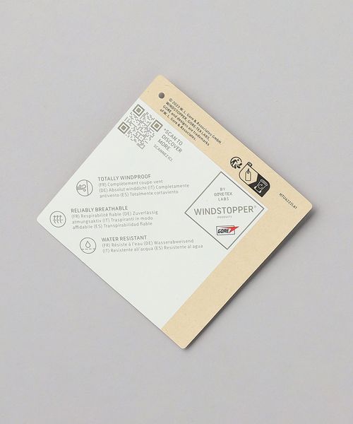 表地には、防風性と透湿性をハイレベルで備えたWINDSTOPPER BY GORE-TEX LABSを使用。