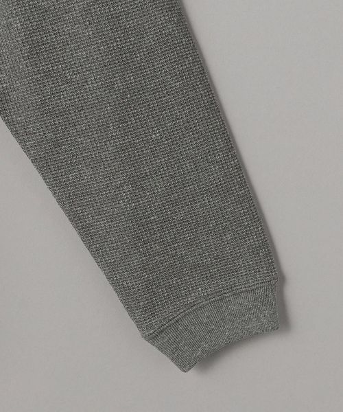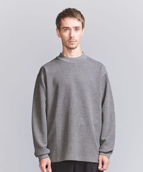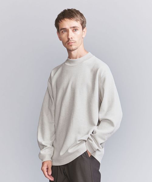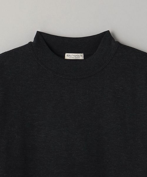 さまざまなスタイリングに合わせやすい、サーマル調のモックネックTシャツです。